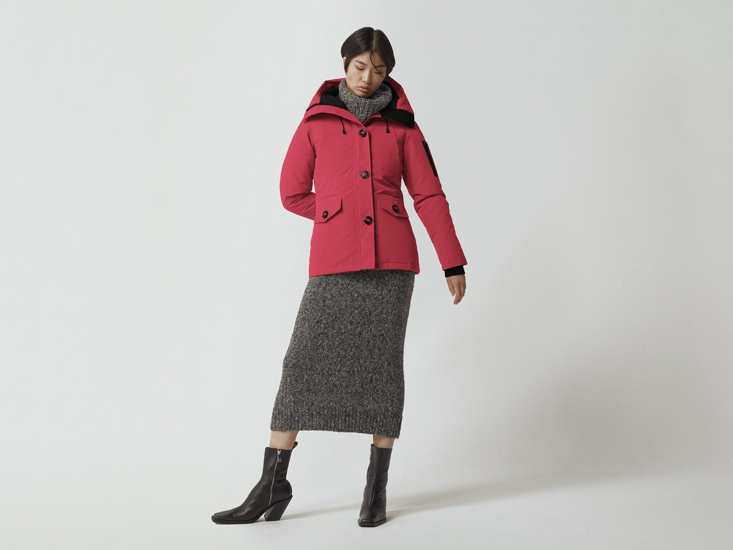 The Montebello Parka was inspired by and named for Quebec’s beautiful, rustic and lavish Chateau Montebello. Slim-fitting with an adjustable waist and smart military button details, the hip-length Montebello Parka embodies a spirit of rugged luxury.