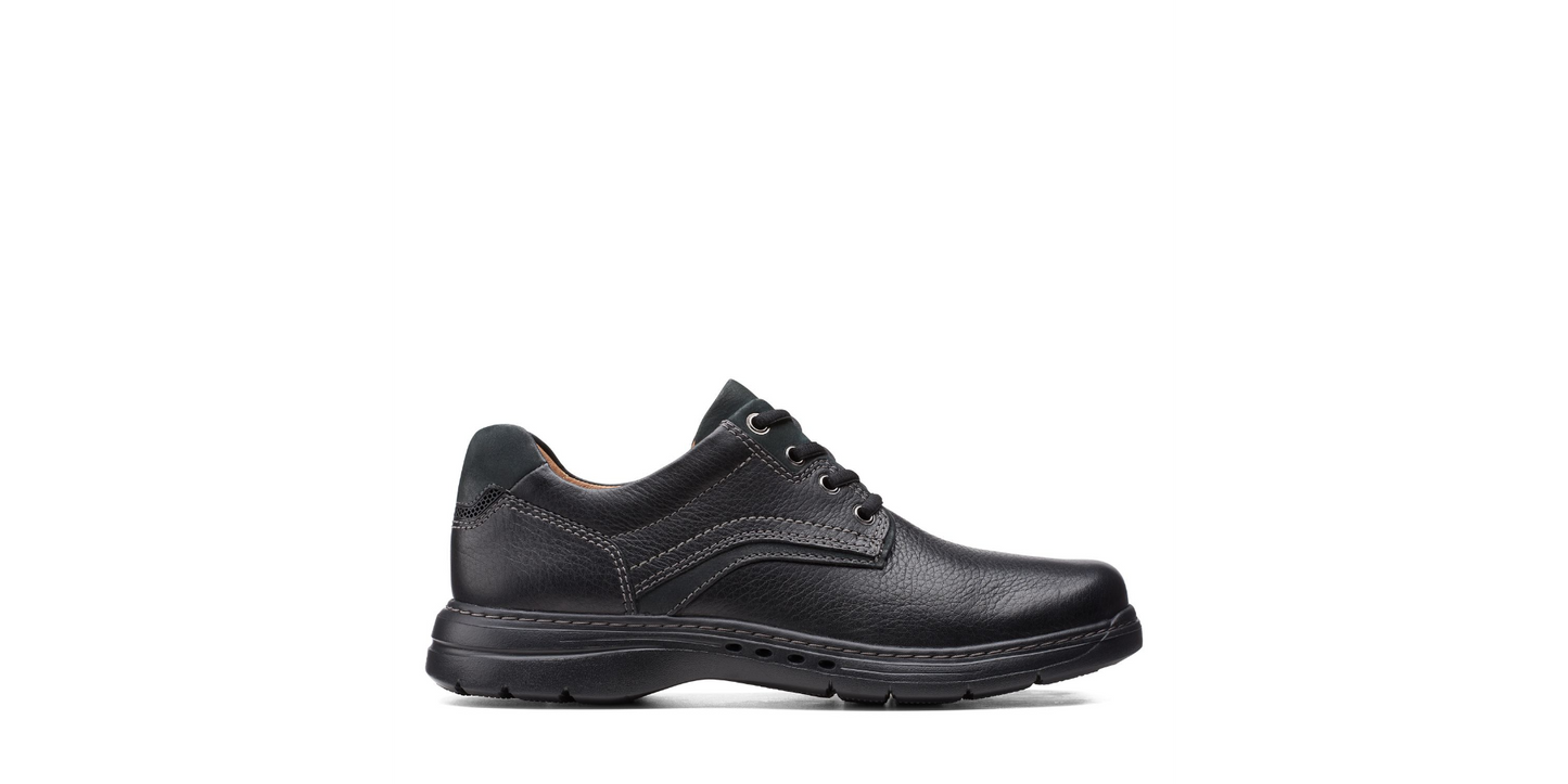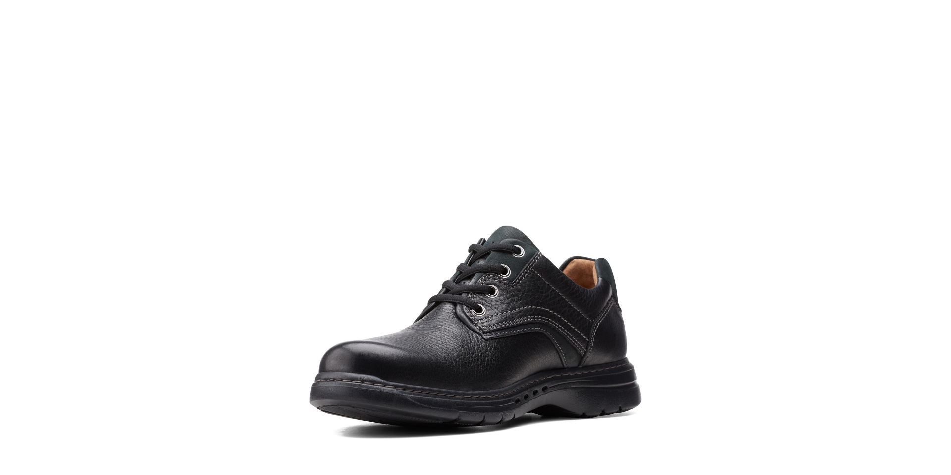 From our Unstructured collection, this lace-up casual shoe benefits from a unique air circulation system to ensure a cool and comfortable step. The black tumbled leather upper features authentic stitch detailing that nods towards the craftsmanship that goes into each shoe. Lightweight, flexible and durable thanks to the high rebound, part eco foam OrthoLiteĀ® footbed and EVA and reponsibly sourced rubber mix sole, these shoes have a full leather lining and sock for a touch of luxury underfoot.