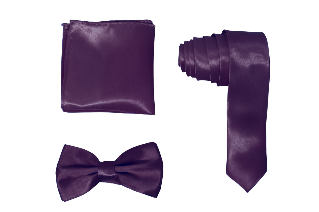 H.R. Lash | SLMNBP016 | Slim Necktie, Bow Tie and Pocket Square 3 Piece Set | Dark Purple
