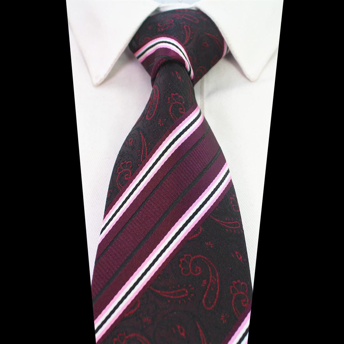 Men's | H. R. Lash Big & Tall Tie | 0709#49 | Burgundy Paisley / Stripe
