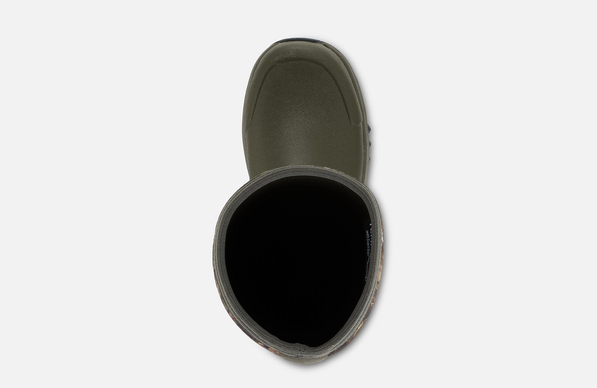 Stay dry when you're hunting in wet weather with this 17-inch waterproof rubber pull-on boot. The full fit features wider leg and ankle openings for easy on-off. Rubber and 7mm neoprene materials combine with the RPM™ midsole for a lightweight boot that provides all-day comfort and support. The rubber mudder outsole tread sheds dirt and mud as you walk to help keep you going, while the aggressive lug pattern on the sole provides extra traction on rough or slippery terrain. TempSens technology regulates the temperature of your foot to maintain constant comfort. ScentBan scent control eliminates odors inside the boot.