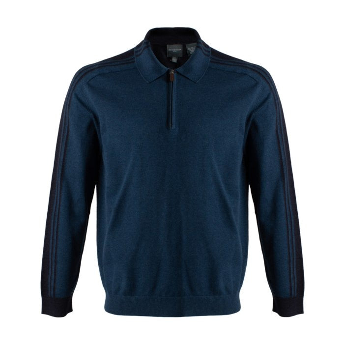 100% Cotton ¼ Zip Two Colour Polo Sweater - Knit Collar Long Sleeve
