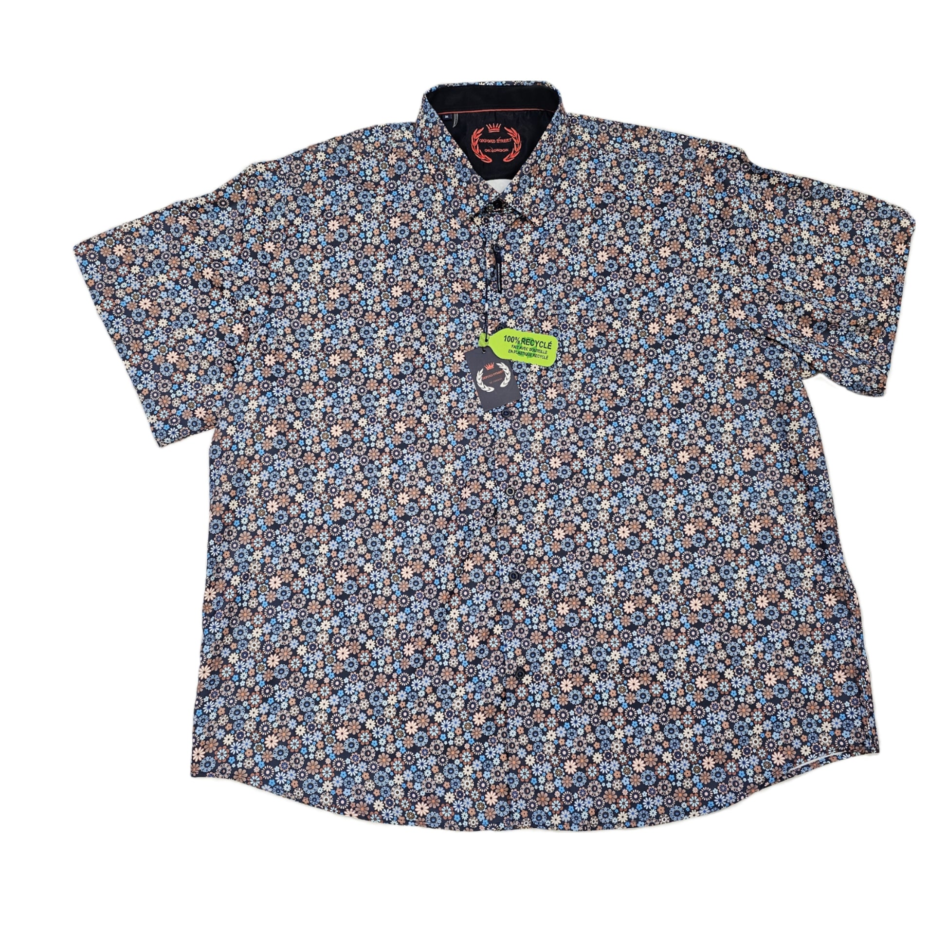 Men's | Oxford Street of London | S24OX4305 | Short Sleeve Button Down | Brown & Blue Blooms