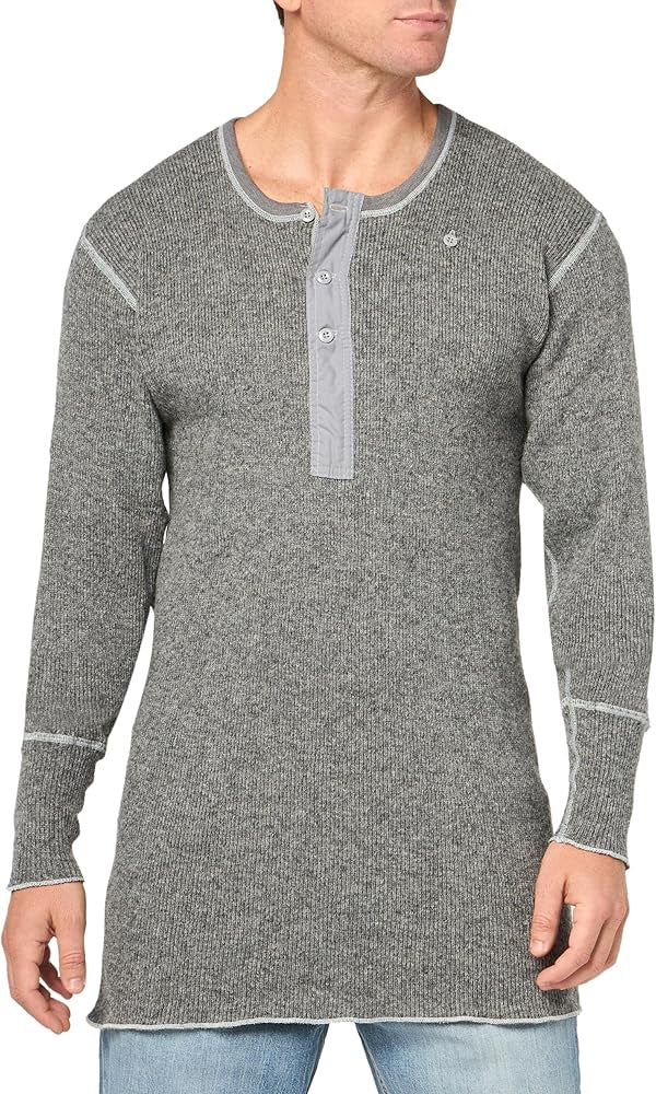 This heavy weight rib knit wool henley is 80% wool, 20% nylon. Around since the gold rush, this heavy wool garment is blended for absorbent comfort, warmth and longer wear. A popular choice for fishing, logging and mining, this long sleeve shirt is fondly known as the "Island Tuxedo". Our wool henley neck features a double front, military insert shoulders and a 3 button placket with an extra button for securing the neck open.